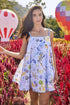 This blue cotton mini dress features a relaxed, flowy silhouette with delicate shoulder straps and a playful all-over print that adds a fresh, feminine charm. Crafted from breathable cotton with a soft, airy feel, it keeps you comfortable while offering effortless movement. Designed for warm days and easy styling, this women’s summer dress is perfect for casual outings, vacations, and laid-back brunches with a light, carefree appeal.