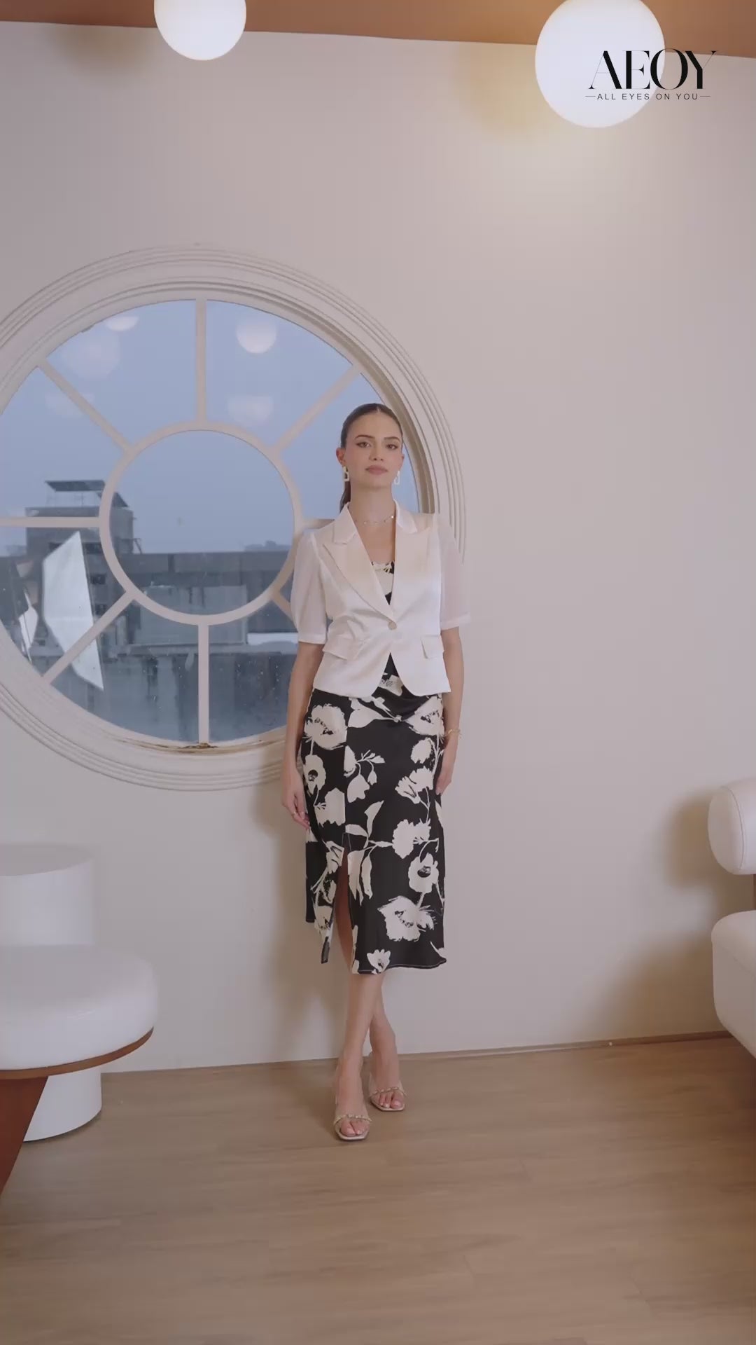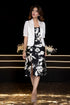 Chic meets timeless in this black-and-ivory floral satin slit Dress with blazer set, this midi dress features a striking black-and-ivory floral print that makes a bold yet elegant statement. Perfect for office parties, cocktail evenings, or dinner dates, this set offers a polished look with a hint of drama. The monochrome floral print adds depth, while the lightweight satin fabric gives you that elegant, effortless flow. Your ideal desk-to-dinner outfit or event-ready partywear.