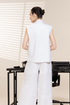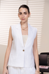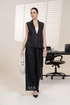 Minimal effort. Maximum presence. The Minimal Power – Co-ord Set is your go-to uniform when you want clean lines with commanding energy. Featuring a sleeveless blazer-style top with a sharp notched lapel and single-button closure, paired with high-rise wide-leg trousers, this set is tailored for structure without the stress. Lightweight, breathable, and boss-approved — this is power dressing made easy. Whether it’s Monday meetings, solo work dates, or a pitch over coffee, this look lets you lead with quiet confidence.
