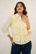 This yellow lace cotton women’s shirt is designed in a regular-fit silhouette with a classic collared neckline and full sleeves. Delicate floral lace detailing across the front adds a soft, elegant touch, while the breathable cotton fabric offers a smooth, lightweight feel for all-day comfort. Perfect for workdays and smart casual settings, this office wear shirt for women blends polish with effortless ease, making it a versatile everyday essential.